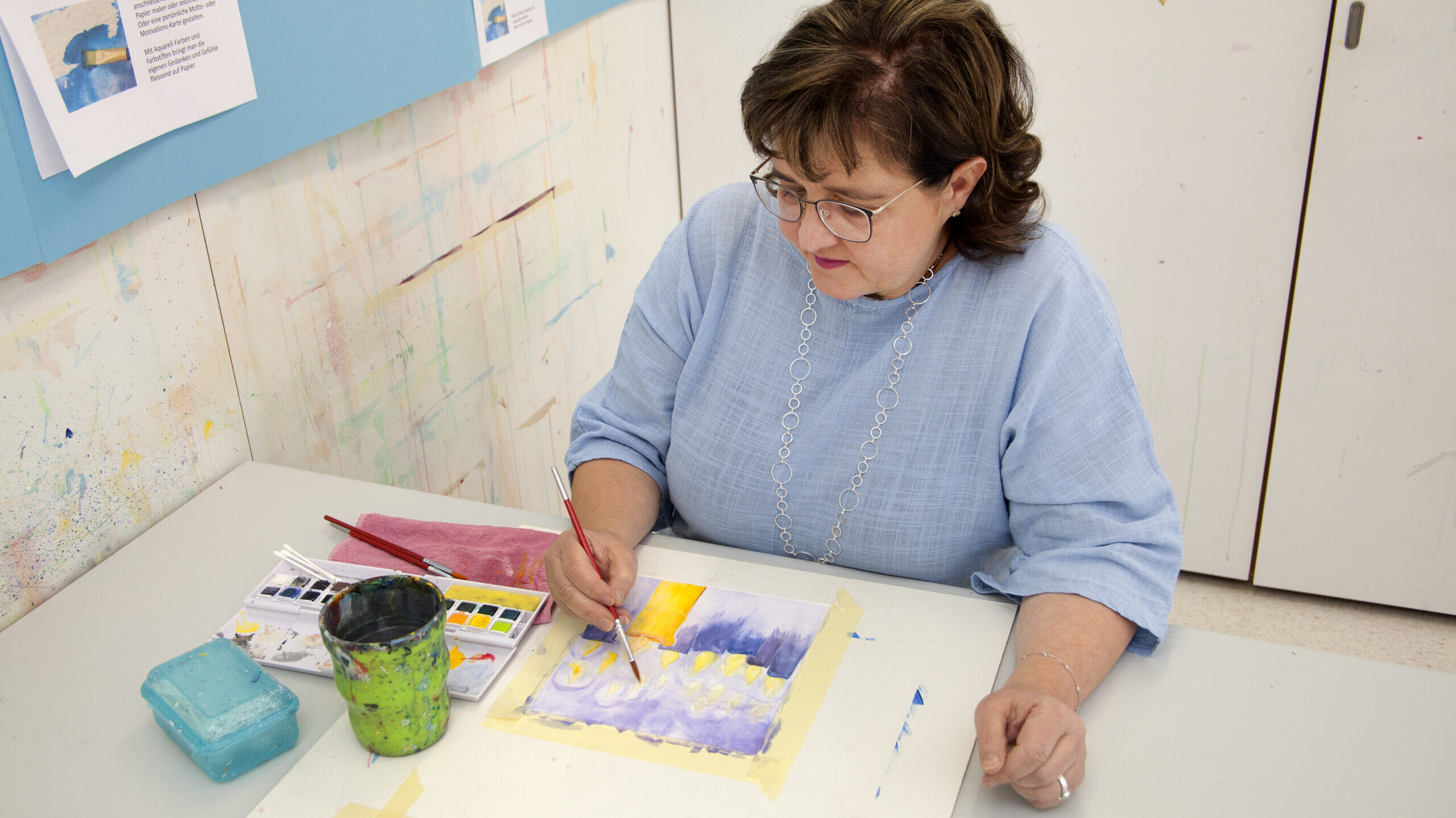 Manche Atelierbesucher sagen Sonja Voser: «Ich kann nicht malen.» Aber darum ginge es auch gar nicht, erklärt sie. Denn wer sich auf den kreativen Prozess einlässt, kommt in Dialog mit dem eigenen Inneren und nicht wenige staunen darüber, was sie aufs Papier bringen. «Kreativität ist Lebensfreude, das ist mein Hauptmotto», sagt Sonja Voser und das Leuchten ihrer hellen Augen verleiht ihren Worten Nachdruck.