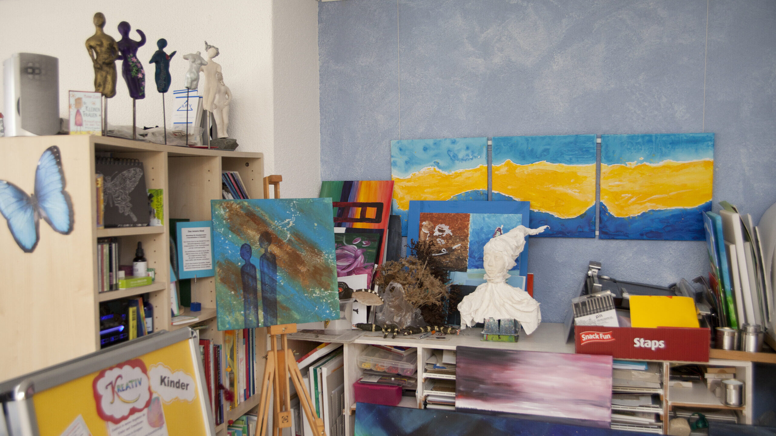 Auch in Therapie, Trauerbegleitung und Coaching arbeitet Sonja Voser mit dem kreativen Potential ihrer Klienten. Das Atelier ist rollstuhlgängig, hat Tageslicht und bietet mit dem Vorraum genug Bewegungsfreiheit für kleine Gruppen. «Ich bin gesegnet mit den Möglichkeiten hier.»