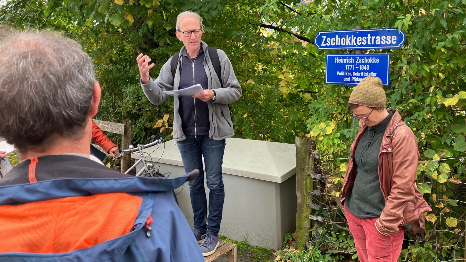 Die Führung hält im Casinopark vor einer grün oxidierten Statue eines Mannes, der als «Schriftsteller, Staatsmann und Volksfreund» bezeichnet wird. Hans Fässler weiss von Heinrich Zschokke noch eine andere Geschichte zu erzählen, nämlich die Geschichte eines prononcierten Antirassisten.