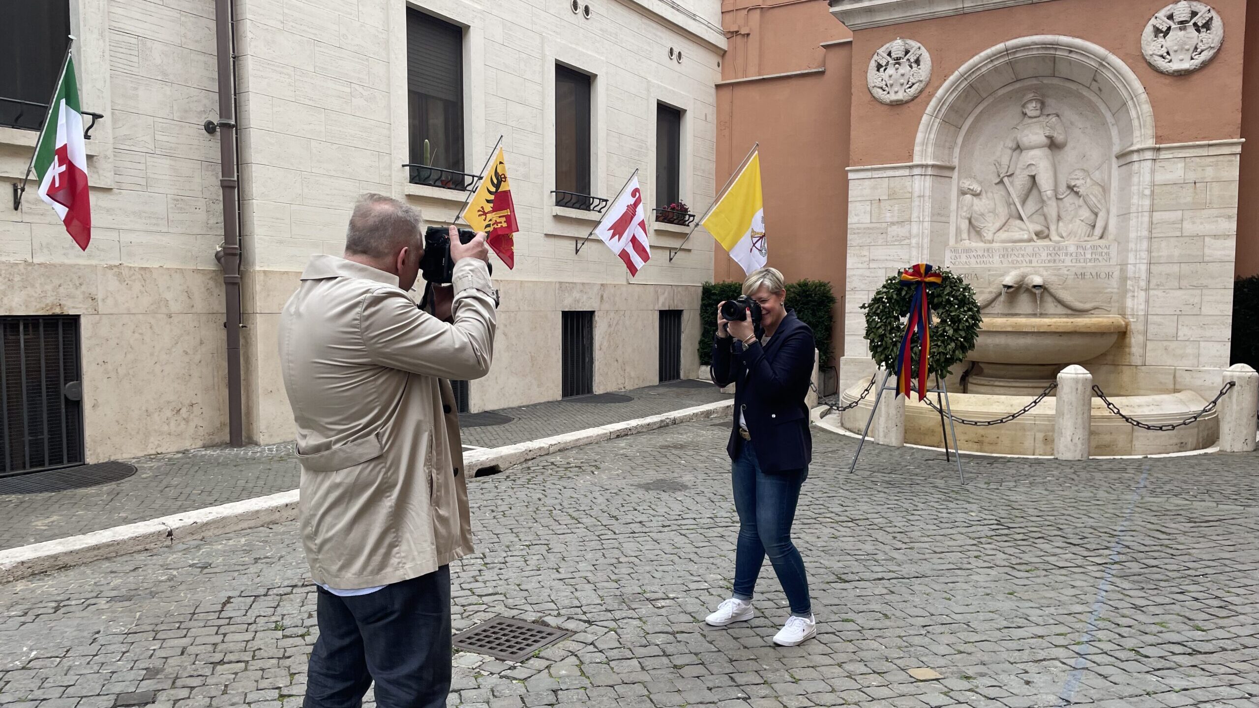 Hinter ihr liegt ein intensives Wochenende mit der Vereidigung der 23 neuen Gardisten. Im blauen Hosenanzug bewegte sich die Fotografin unauffällig mitten im Geschehen. Heute ist sie nicht mehr im Pulk, im abgetrennten Pressebereich, sondern darf sich frei bewegen. Die grossen Teleobjektive erlaubten es ihr, den gebührenden Abstand zu ihren Protagonisten zu halten. Das sei wichtig im Vatikan, sagt die Fotografin.