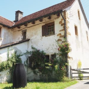 Den Eingang zum Ausstellungsraum zur rechten, liegt vor einem der Eingang zum Klosterhof, schräg links vor einem der Klostergarten. Unzählige Bienen, Hummeln und Schmetterlinge summen, brummen und flattern zwischen den Wildblumen. «Tee und Blumensträusse für die Zimmer», sagt Carola Schütz auf die Frage, was mit der Pracht geschehe. Sommerlich satte Stille liegt über dem Ort, einzig untermalt durch Kuhglocken und Grillenzirpen. Über den Hof kommt ein junger Mann. Er ist der Bauer, der den Hof des Klosters Schönthal nach Demeter-Richtlinien bewirtschaftet.