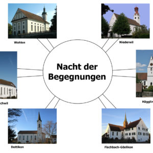 22 Uhr Imbiss und Getränke, 22.30 Uhr Nacht der Lichter in der kath. Kirche Wohlen.