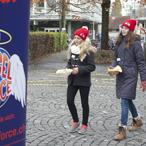 Für Beat Schalk war klar: Die Jugendlichen sollten sich nicht hinter ihrem Stand verschanzen, sondern aktiv auf die Leute zugehen. «Eine Schülerin kannte die Aktion bereits», erinnert sich der Seelsorger. «Sie hat ihre Mitschülerinnen darauf vorbereitet, dass es Mut braucht, Leute einfach anzusprechen.» Umso willkommener ist es den Jugendlichen, wenn sie in der Menge ein bekanntes Gesicht erkennen und von vornherein Goodwill ernten. Wer die Reaktionen der Menschen auf die Aktion Angel Force beobachtet, erkennt bald: Für ihren Ruf, sei dieser nun gut oder schlecht, können die Jugendlichen nur bedingt etwas. Es kommt vielmehr darauf an, inwieweit Erwachsene bereit sind, jungen Menschen unvoreingenommen zu begegnen.