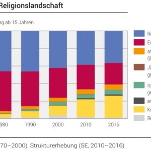 Am Mittwoch, 31. Januar 2018, veröffentlichte das Bundesamt für Statistik (BFS) die Ergebnisse der Strukturerhebung der eidgenössischen Bevölkerung. Untersucht wurde auch die Religionslandschaft der Schweiz. Diese habe sich in den letzten 40 Jahren ziemlich stark verändert, heisst es auf den Seiten des BFS. Während der Anteil der römisch-katholischen Landeskirche relativ stabil geblieben ist, hat jener der evangelisch-reformierten Landeskirche stark zugunsten von Konfessionslosigkeit abgenommen. Untersucht wurden die Konfessionszugehörigkeit, die Teilnahme an Gottesdiensten, die Häufigkeit des Betens und der Glaube an Gott. Ausserdem verschiedene Glaubensformen und die Bedeutung der Religion im Alltag.