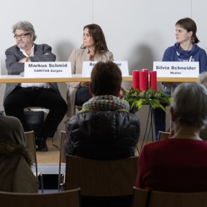Markus Schmid, Leiter der Fachstelle Diakonie bei der Caritas Aargau, erklärte, dass es mit dem ökumenischen Projekt der Wegbegleitung oder den Kirchlichen Regionalen Sozialdiensten genau um diese niederschwelligen Hilfs- und Begleitangebote geht. «Meine Frau und ich haben selber lange einer allein erziehenden Mutter geholfen, indem wir ihr Kind zu uns genommen haben, wenn sie abends arbeiten musste», sagte er. Silvia Schneider, seit 14 Monaten Mutter, zeigte sich erleichtert, dass andere Mütter dem Druck von aussen ebenso ausgesetzt sind wie sie selber. «Es ist manchmal schwer, damit umzugehen, dass Kolleginnen kommen und fragen, ob ich jetzt endlich wieder arbeite», sagte sie. Sie fühle sich wohl damit, im Moment einfach daheim zu sein, Mutter zu sein. Fast eine Tabuhaltung in einer Gesellschaft, die Elternschaft und Beruf unter einen Hut bringen möchte.